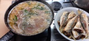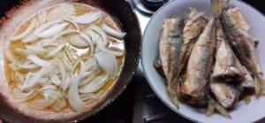 P.S. veće primjerke škombra filetirati. Ribu posoliti prije negoli se uvalja u brašno i friga. U savor, uz kapulu i začine, obavezno dodati domaći crni ocat……iiiii