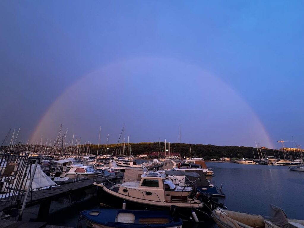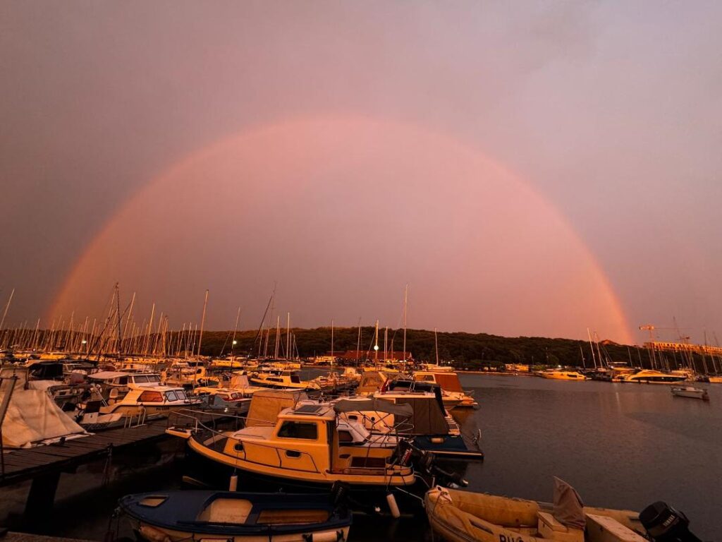 26. srpnja 2025. u 20.30 satiI, sportska luka Delfin zaplovila je ispod duge. Izravni svjedok ovome čudu je Radovan Zlojić, naš član, koji svjedočenje dokazuje ovim svojim snimkama.