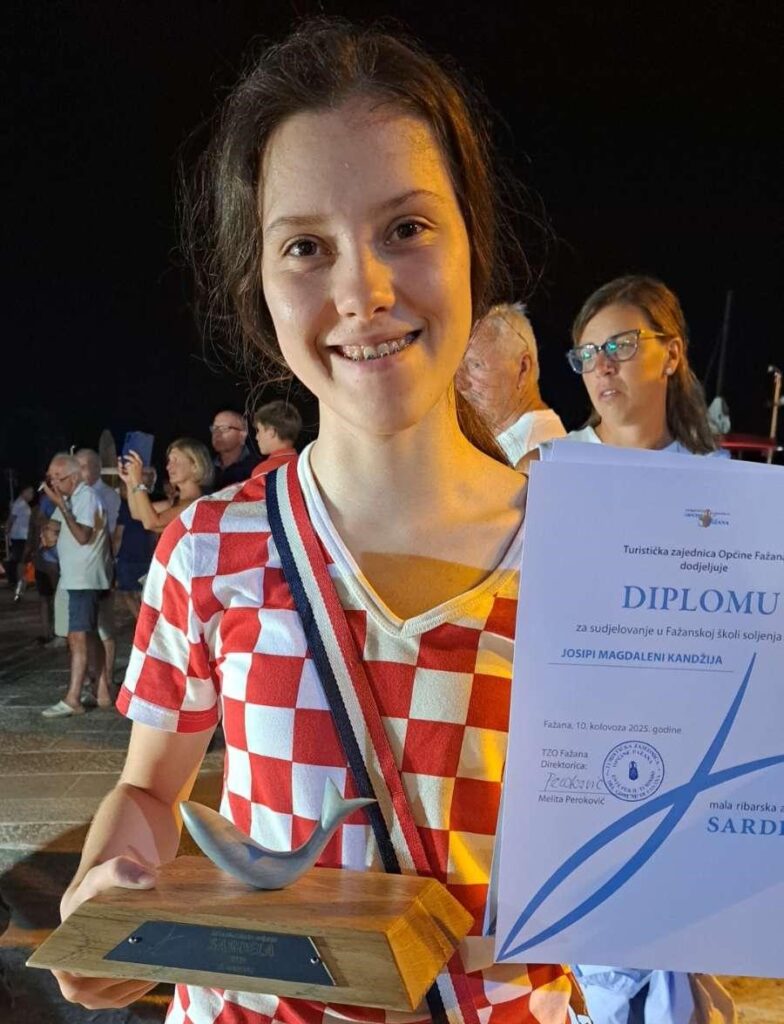 U nedjelju je, u Fažani, priređenba završnica 21. Škole soljenja sardela, u organizaciji TZ Fažana i pod ravnateljstvom Budimira Žižovića. Među 120 polaznika, sudjelovale su i tri ekipe Delfinove Male škole ribolova: Marin Tomišić i Luka Benazić, Kael Košara i Karol Odobašić, Josipa Kandžija i Goran Artuković.